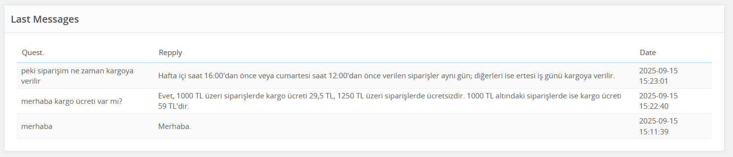 Use past questions and answers to enrich your reference texts and improve your store’s overall communication quality.